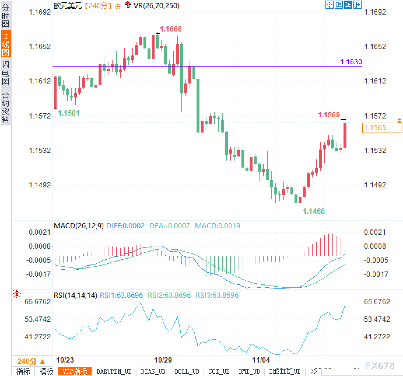 EBC官网——11月7日,星期五。欧元兑美元延续反弹,北美时段现报1.1565。美元指数走弱,风险资产的波动与避险情绪交替主导盘面。在官方就业与通胀数据暂时缺席的环境下,市场对美联储与欧洲央行的政策路径再定价趋于谨慎,欧元兑美元进入以存量信息博弈为主的窄幅拉锯。